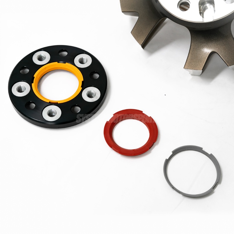 - The hub adapter is equipped with a vehicle specific centering ring