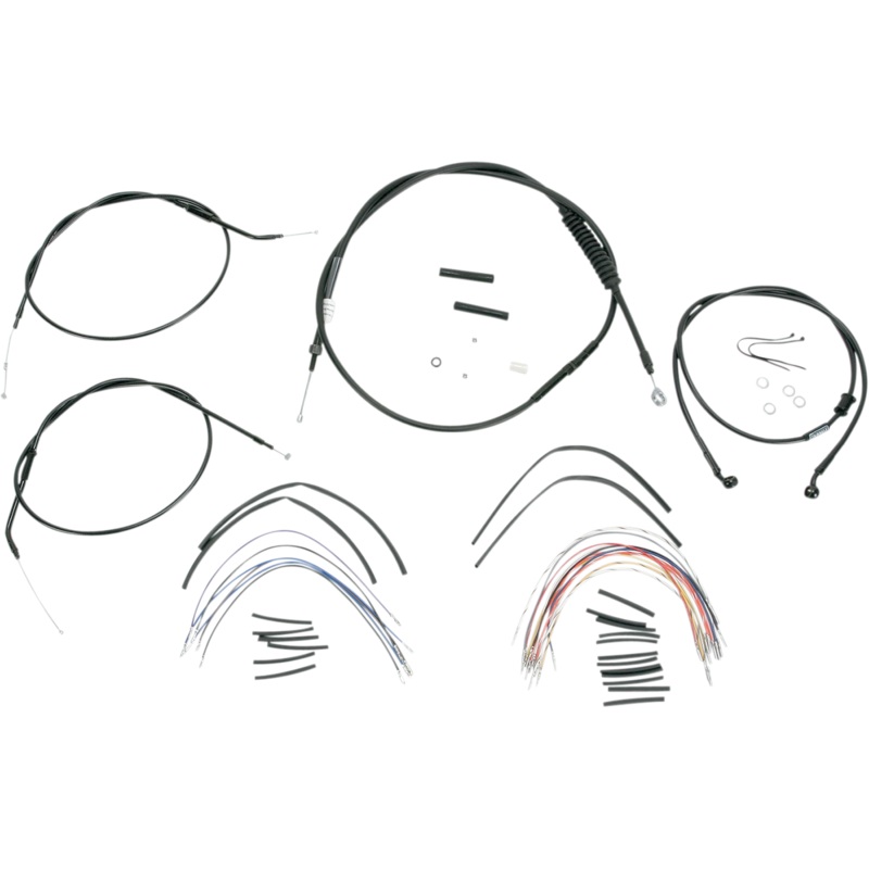 Complete installation kit for Burly Ape hangers. Kit includes extended brake line (unless noted), extended clutch cable/clutch line, extended throttle/idle cables as required and all necessary wiring. Brake lines, when included, feature PTFE inner liner an