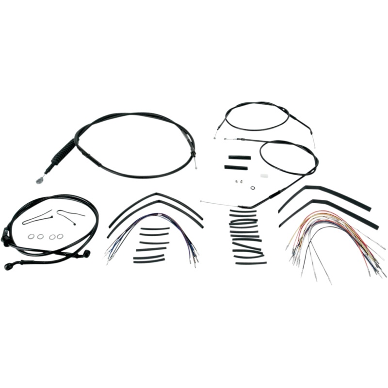 Complete installation kit for Burly Ape hangers. Kit includes extended brake line (unless noted), extended clutch cable/clutch line, extended throttle/idle cables as required and all necessary wiring. Brake lines, when included, feature PTFE inner liner an