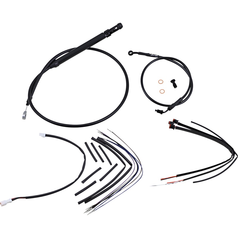 Complete installation kit for Burly Ape hangers. Kit includes extended brake line (unless noted), extended clutch cable/clutch line, extended throttle/idle cables as required and all necessary wiring. Brake lines, when included, feature PTFE inner liner an