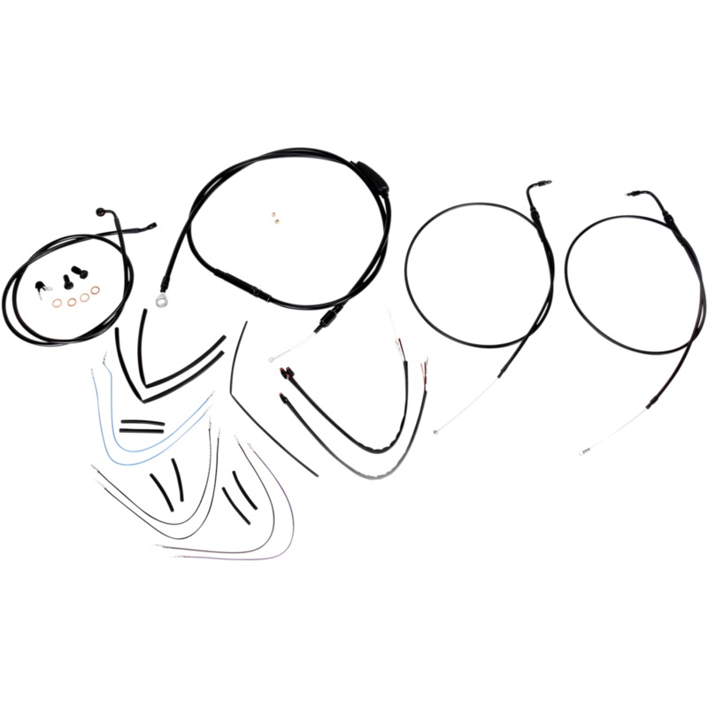Complete installation kit for Burly Ape hangers. Kit includes extended brake line (unless noted), extended clutch cable/clutch line, extended throttle/idle cables as required and all necessary wiring. Brake lines, when included, feature PTFE inner liner and heavy-duty stainless steel outer braid. Dresser kits reuse stock Throttle-By-Wire harness. Kit is based on using 2″ risers with ape hanger-style handlebars..
