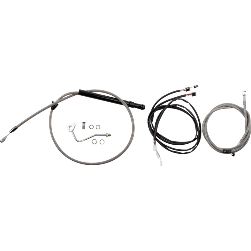 Includes everything you'll need to install your handlebars: clutch cable, brake line, extension kit for main harness, shrink tubing & extension kit for Throttle-By-Wire. Intended for use with standard 2" risers.. Some ABS models use stock brake line..