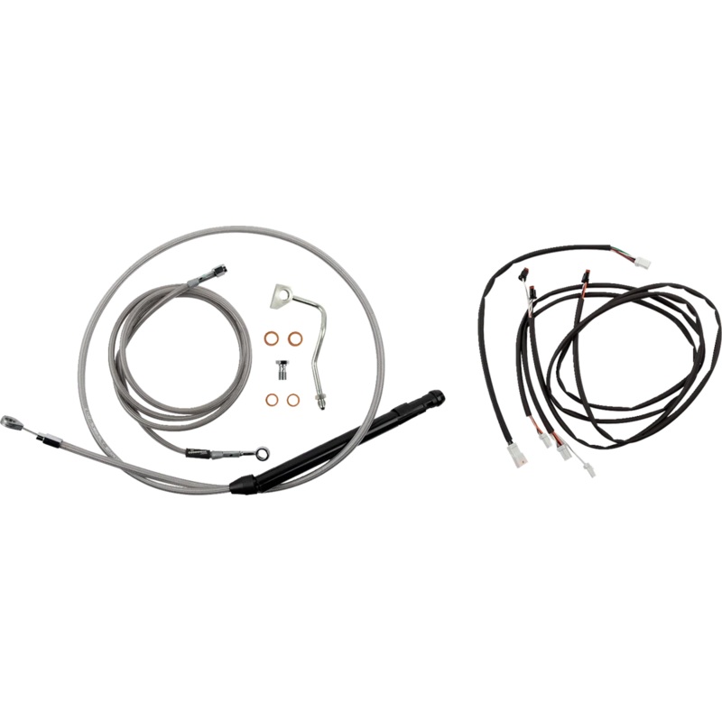 Includes everything you'll need to install your handlebars: clutch cable, brake line, extension kit for main harness, shrink tubing & extension kit for Throttle-By-Wire. Intended for use with standard 2" risers.. Some ABS models use stock brake line..