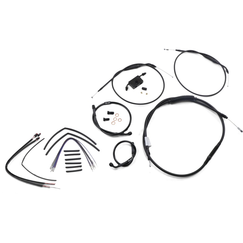 Each kit includes all of the components necessary to install handlebars on the Sportster models. Includes a bar length specific extended brake line, extended clutch cable and extended wiring for installation.