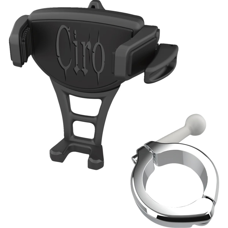 Ciro Phone Holder – Constrictor – Black – Chrome 1-1/2″ Handlebar Mount 50356