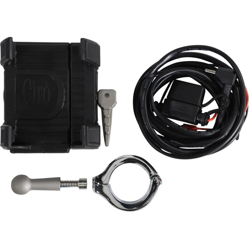 Charger model has 1.3 USB port for on-board charging as you ride (cable not included). Quick and simple ambidextrous design lets you just flip the lever to lock smartphone into the secure rubber molded fingers. Infinite adjustment with Ciro ball-mount desi