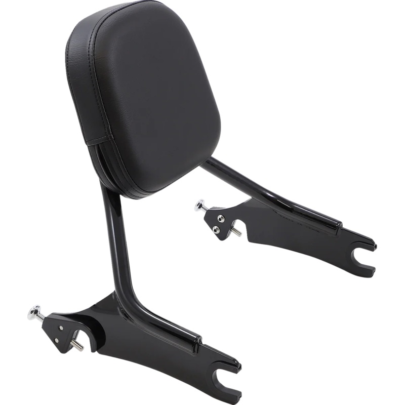 Shorter than standard detachable backrest with a smaller pad. Pad measures 6.5" W x 4.5" H. A detachable backrest offers the best of both worlds for your passenger. The convenience of a comfortable back support for your passenger, with the ability to quick