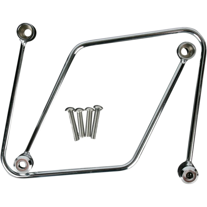 Keep throw-over saddlebags from getting tangled in the rear wheel. Attach to existing mounting points for easy installation; custom-fit to each bike. Made of thick steel tubing bent to fit each bike model and then polished and powder coated. Safety feature