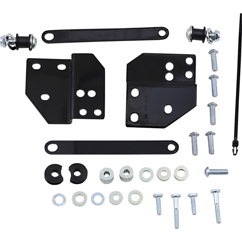 Utilizes four-point docking hardware to secure Tour Pack to bike. Made in the U.S.A. Baggers using the Two Up Tour Pack Luggage Rack require riders use both the front docking hardware and rear docking hardware.