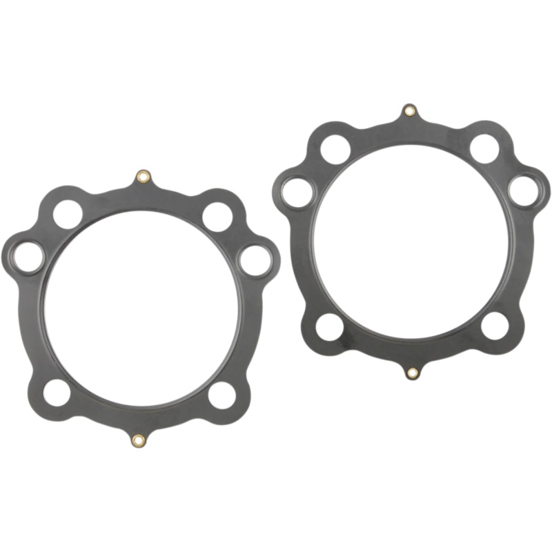 Center or shim layer is uncoated stainless steel, which can be varied to accommodate multiple thickness requirements. Outer layers are embossed and coated on both sides with Viton to meet the demands of a variety of harsh sealing environments, load conditions, and surface finishes. MLS (Multi-Layer Steel) head gaskets promote an even torque load across the gasket sealing surface utilizing LCE (Load Control Embossments), providing less bore distortion and better piston ring seal for more power. Made in the U.S.A..