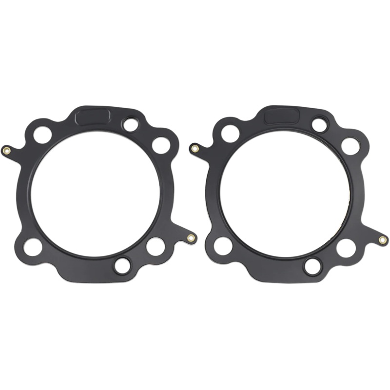 Center or shim layer is uncoated stainless steel, which can be varied to accommodate multiple thickness requirements. Outer layers are embossed and coated on both sides with Viton to meet the demands of a variety of harsh sealing environments, load conditions, and surface finishes. MLS (Multi-Layer Steel) head gaskets promote an even torque load across the gasket sealing surface utilizing LCE (Load Control Embossments), providing less bore distortion and better piston ring seal for more power. Made in the U.S.A..