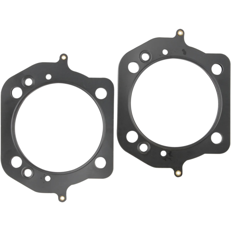 Center or shim layer is uncoated stainless steel, which can be varied to accommodate multiple thickness requirements. Outer layers are embossed and coated on both sides with Viton to meet the demands of a variety of harsh sealing environments, load conditions, and surface finishes. MLS (Multi-Layer Steel) head gaskets promote an even torque load across the gasket sealing surface utilizing LCE (Load Control Embossments), providing less bore distortion and better piston ring seal for more power. Made in the U.S.A..