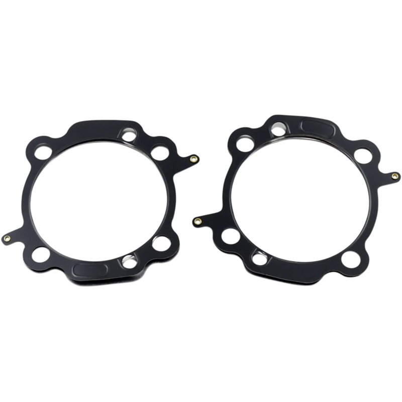 Center or shim layer is uncoated stainless steel, which can be varied to accommodate multiple thickness requirements. Outer layers are embossed and coated on both sides with Viton to meet the demands of a variety of harsh sealing environments, load conditions, and surface finishes. MLS (Multi-Layer Steel) head gaskets promote an even torque load across the gasket sealing surface utilizing LCE (Load Control Embossments), providing less bore distortion and better piston ring seal for more power. Made in the U.S.A..