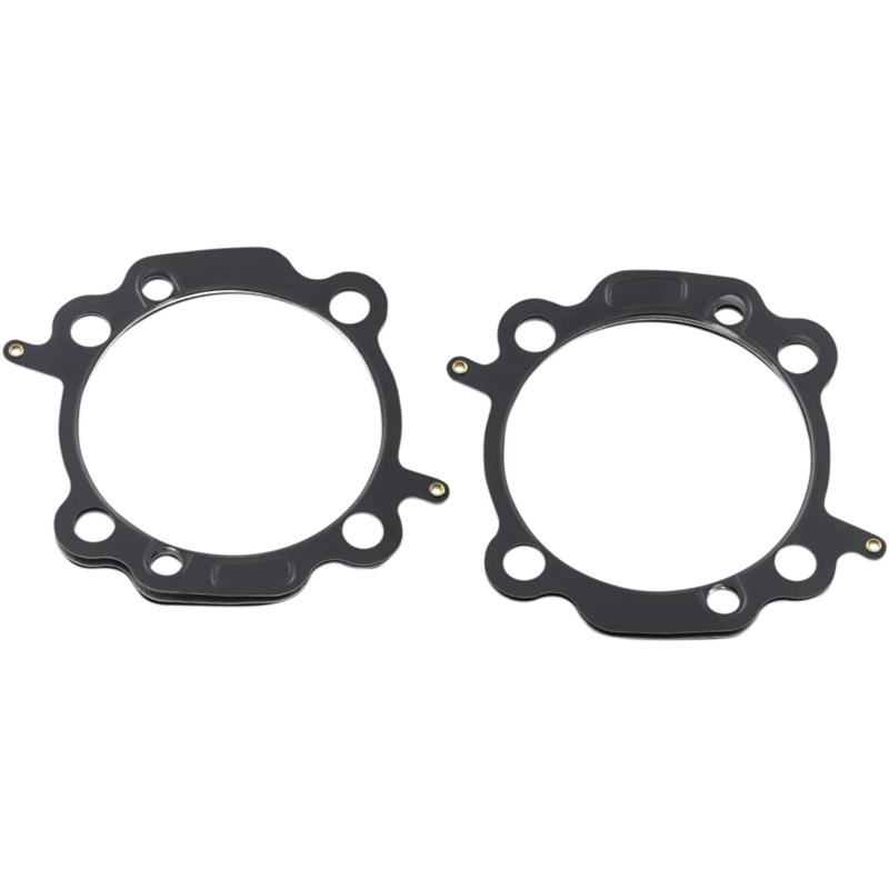 Center or shim layer is uncoated stainless steel, which can be varied to accommodate multiple thickness requirements. Outer layers are embossed and coated on both sides with Viton to meet the demands of a variety of harsh sealing environments, load conditions, and surface finishes. MLS (Multi-Layer Steel) head gaskets promote an even torque load across the gasket sealing surface utilizing LCE (Load Control Embossments), providing less bore distortion and better piston ring seal for more power. Made in the U.S.A..
