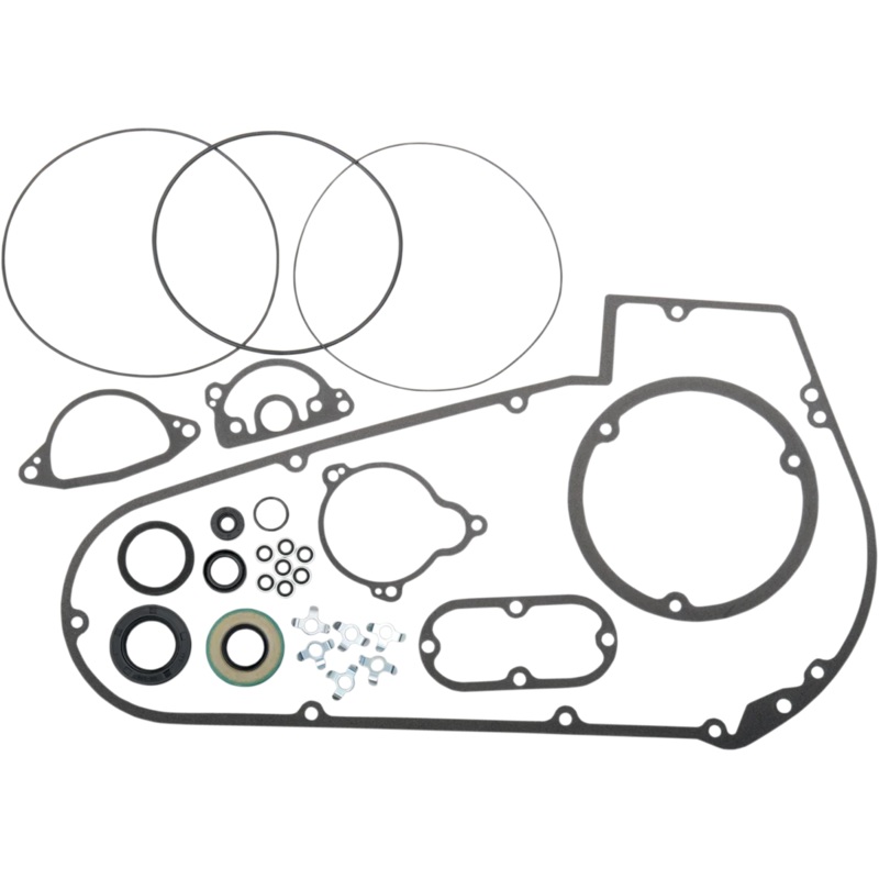 Cometic’s proprietary AFM (Aluminum Foamette Material) gaskets feature an aluminum core with a chemically blown, compounded nitrile synthetic rubber bonded to the outside. Gaskets have resistance to temperatures of more than 205F. Have an 85% shape-recovering while maintaining strong torque retention – ideal gasket material for machined surfaces. Does not require gasket sealer. Kit includes all gaskets, seals and O-rings required for both the inner and outer primary. Made in the U.S.A..