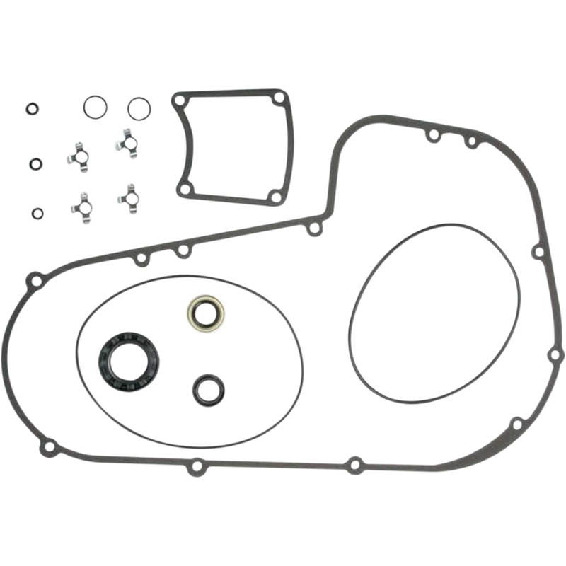 Cometic’s proprietary AFM (Aluminum Foamette Material) gaskets feature an aluminum core with a chemically blown, compounded nitrile synthetic rubber bonded to the outside. Gaskets have resistance to temperatures of more than 205F. Have an 85% shape-recovering while maintaining strong torque retention – ideal gasket material for machined surfaces. Does not require gasket sealer. Kit includes all gaskets, seals and O-rings required for both the inner and outer primary. Made in the U.S.A..