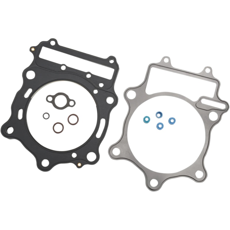 Top end gasket kit includes correct base, head gasket and cylinder O-rings as well as other top end specific O-rings or seals needed for R&R of top end. MLS head gaskets promote an even torque load across the gasket sealing surface, providing less bore dis