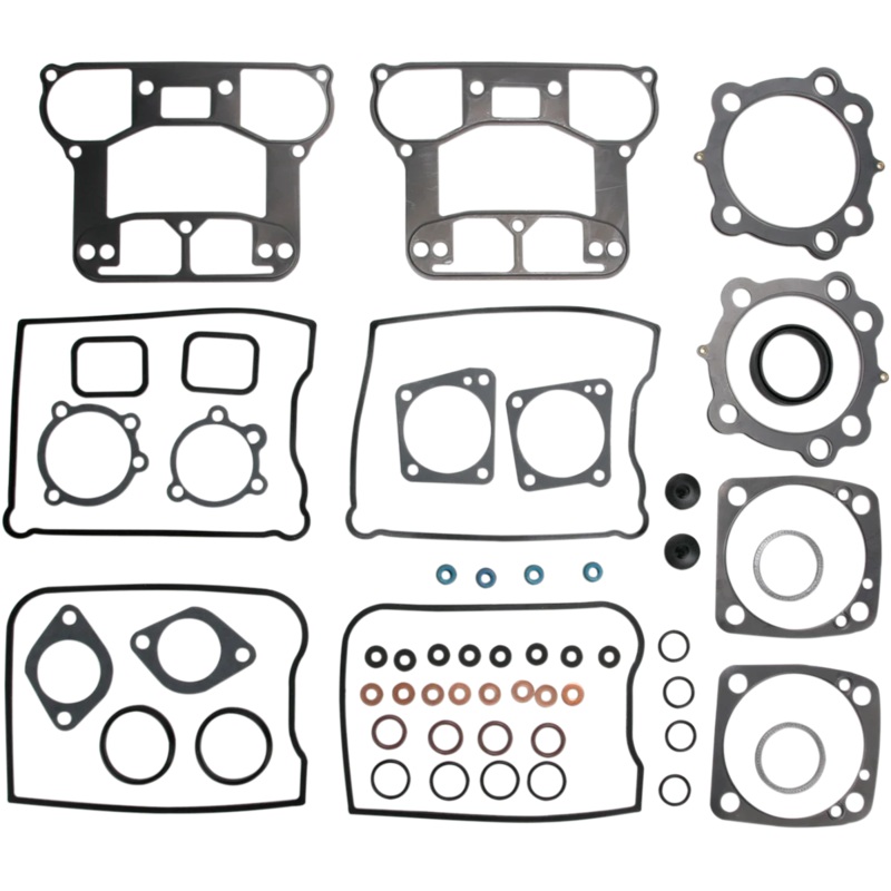 EST (Extreme Sealing Technology) gasket kits include embossed stainless steel head, base, and rocker gaskets covered with a proprietary rubber material. Head gasket material allows heat to be drawn away from the combustion ring and dissipated evenly across the gasket surface to eliminate hot spots and gasket failure. Sets contain all the necessary gaskets, seals, and O-rings to rebuild the top end from the cylinder base upward. Made in the U.S.A..