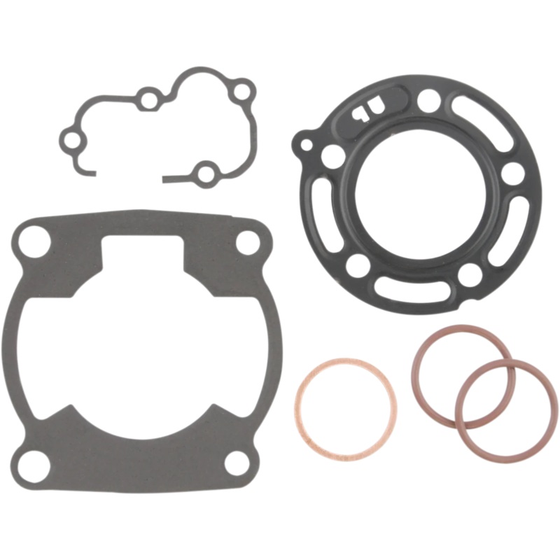 Top end gasket kit includes correct base, head gasket and cylinder O-rings as well as other top end specific O-rings or seals needed for R&R of top end. MLS head gaskets promote an even torque load across the gasket sealing surface, providing less bore dis