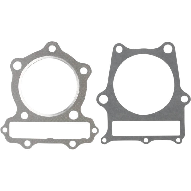 Top end gasket kit includes correct base, head gasket and cylinder O-rings as well as other top end specific O-rings or seals needed for R&R of top end. MLS head gaskets promote an even torque load across the gasket sealing surface, providing less bore dis