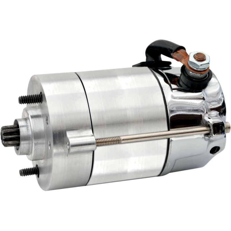 Permanent Magnet Gear Reduction (PMGR) Prestolite-style starter. Mates to OEM starter gear case and output shaft. Produces 1.6kW of cranking energy by using a modern permanent magnet field. Lower planetary gear reduction ratio of 6:1. Standard machined finish with chrome end caps.