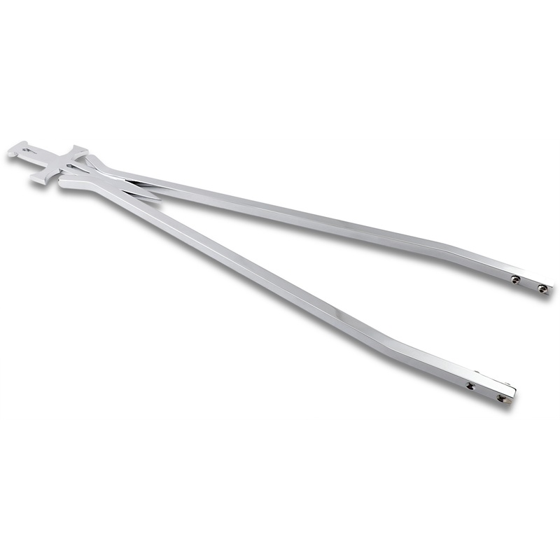 Made From 9/16" steel bar. Side plates must be purchased separately. Made in the U.S.A.. For show use only, not designed for passenger support. Fits all H-D side plates except for Plug-N-Play.