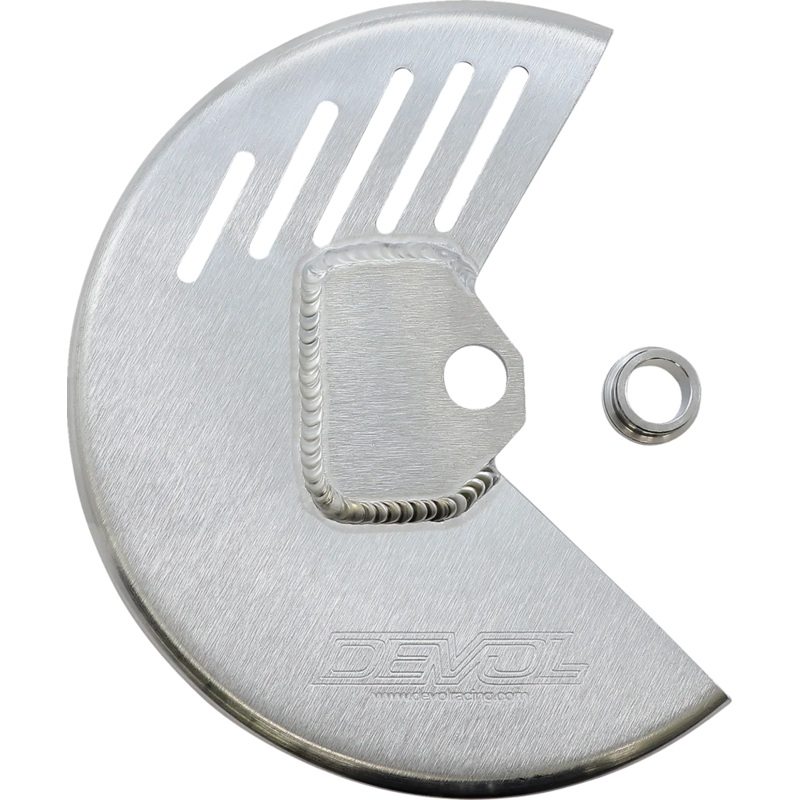High-grade aluminum alloy. Very strong disc brake protection. Guard covers entire front leading edge. Lightweight and very effective. The ultimate front disc guard. Easy to install; all hardware included.