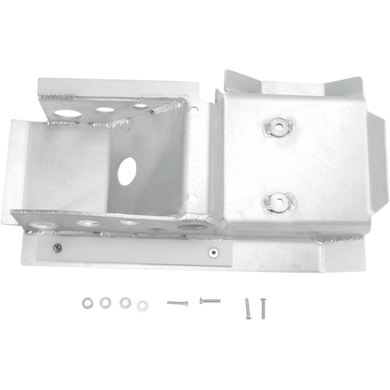 Heavy-duty 3/16" thick 6061 aluminum alloy skid plates protect your sprocket, swingarm and brake rotor from damage; plates bolt to the swingarm.