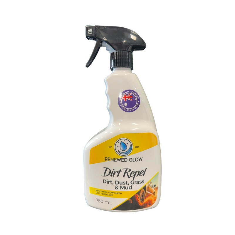 IntroducingDirt Repel by Renewed Glowthe ultimate protector for your motorbike plastic guards, wheel arches, vehicle under-body and industrial equipment.Dirt Repelis engineered to repel dirt, dust, grass, mud, sand, and tire rubber, keeping your vehicle's