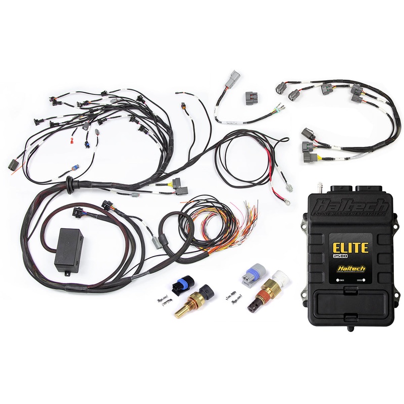 Elite 2500 + Terminated Harness Kit for Nissan RB Twin CamWith Series 2 (late) ignition type sub harnessAir Temp Sensor - Small Thread M14 x 1.5Coolant Temp Sensor - Small Thread M12 x 1.5Harness OverviewThe fastest and most cost effective way to wire your