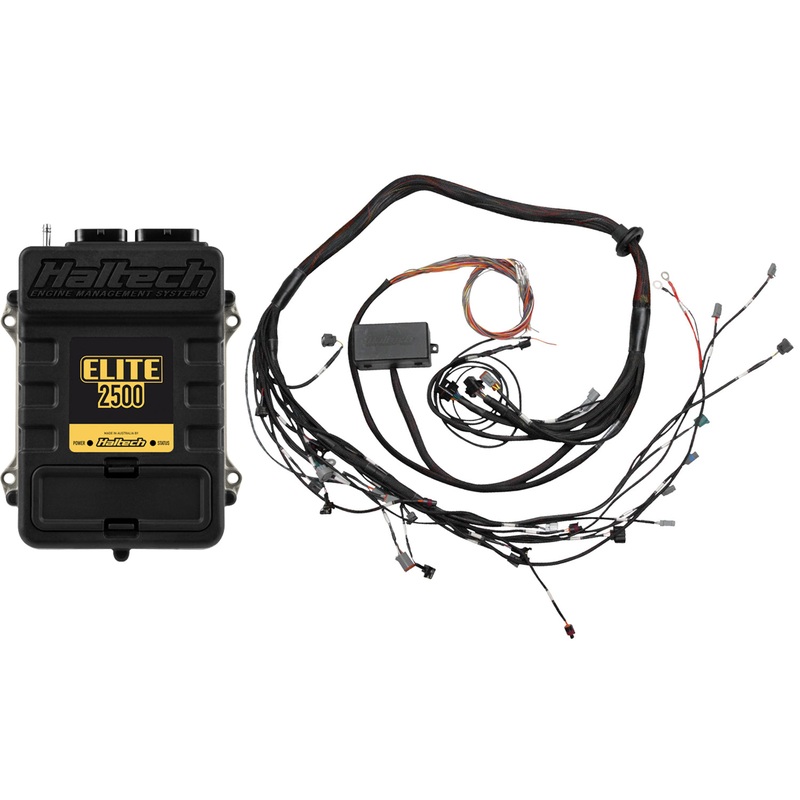 Includes:Elite 2500 ECU with DBW and Race Functions. engine harness with fuse block, firewall grommet, 1200mm ignition extension harness, USB programming cable and USB Software Key.