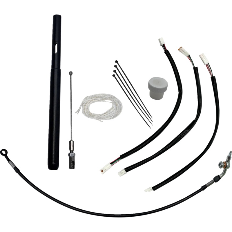 Includes what you need to install higher bars on your motorcycle. Installs in half of the time of other kits. Includes ropes, lube and zip ties.