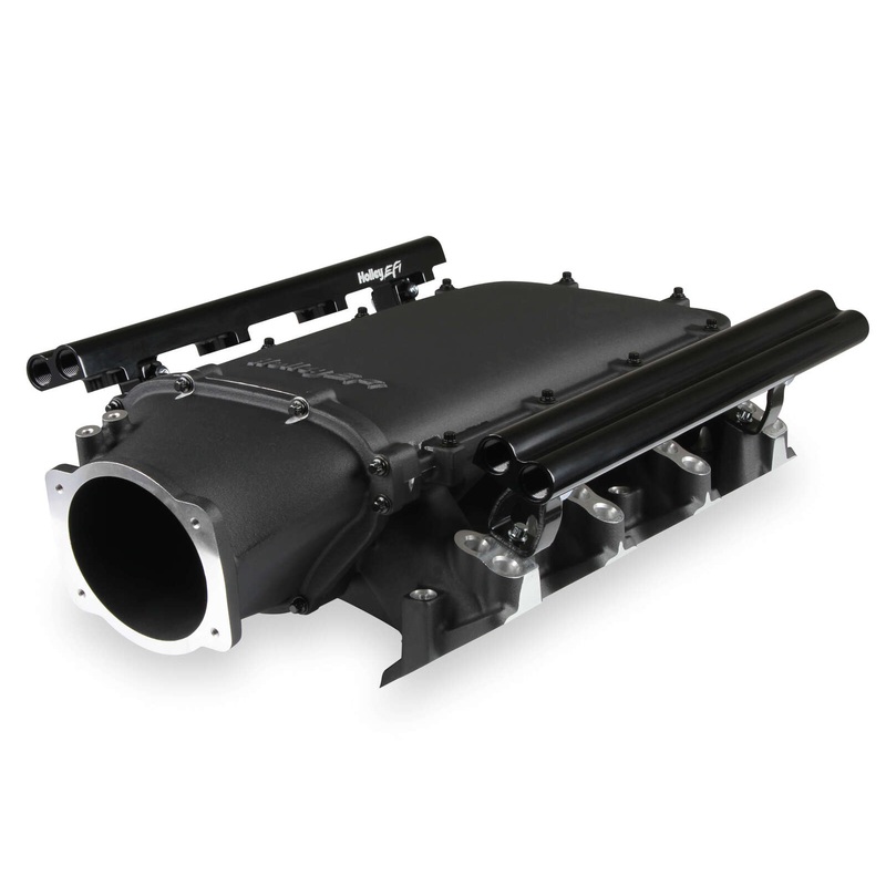 Holley Intake Manifold, LS Modular Ultra Lo-Ram EFI, LS3/L92, Dual Injector, w/Fuel Rails, Aluminum, BlackAvailable with single or dual injector provisions and a burst panel flange, the LS3 Ultra Lo-Ram intake manifold is designed for boosted combinations