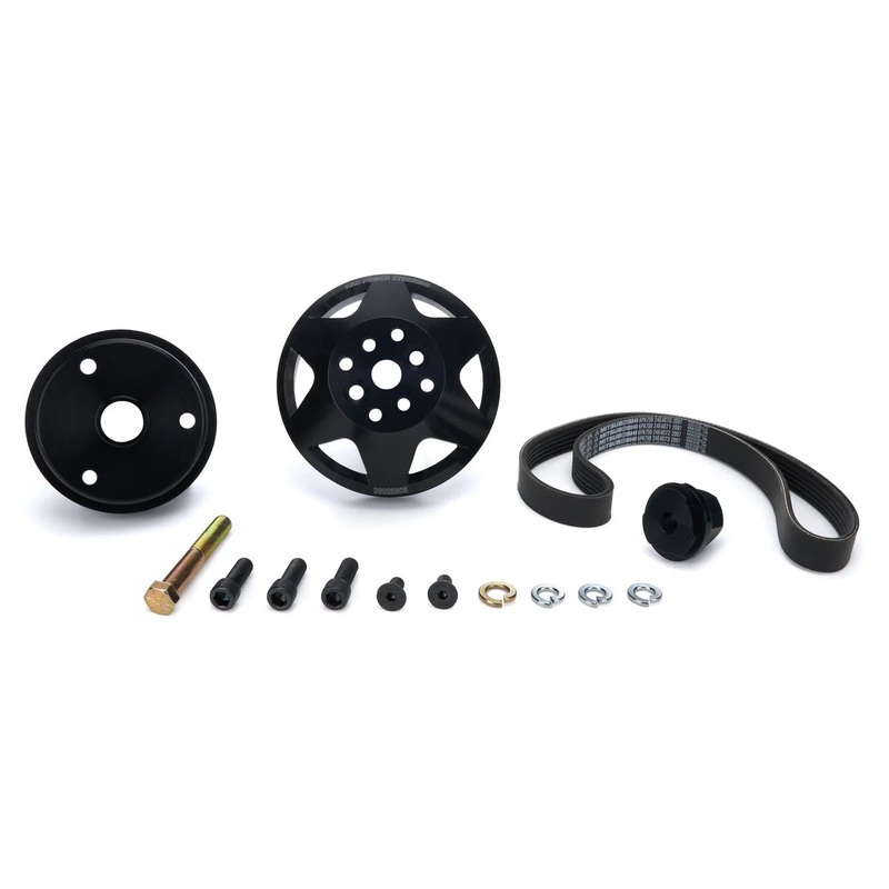 Pulley Kit – Economy – 6-Rib Serpentine – 30 Percent Reduction – Water Pump – Aluminum – Black Anodized – Small Block Chevy – Kit