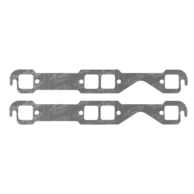 Manufactured from high-temperature steel core/graphite faced exhaust material. Expanded steel core provides stability and maximum torque retention to eliminate gasket failure. Graphite facing provides excellent heat resistance and thermal conductivity to transfer heat away from the cylinder head. Conforms to and seals minor surface irregularities. High recovery material allows header or manifold flange to stay sealed if flange loses clamp-load. Can be trimmed if necessary for modified port applications. For original equipment replacement, high performance street, drag race and oval track use.