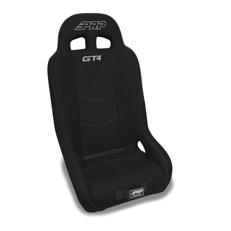 The GT4 is the fourth generation of our best selling GT Series. New features include a redesigned modern style with dual harness slots, 3 layer gel infused removable seat cushion, and new color and materials options so that you can customize your seat more than ever! The GT4 keeps you contained and comfortable with 7 inches of side containment, and a perfect 12 degree seating angle. Medium level containment on the sides keeps you secure when the ride gets rough, but still makes it easy to get in & out of the vehicle. That containment means you can drive with confidence and control – even when bouncing around in rough terrain. The seats vinyl-coated nylon suspension liner and dual-density foam decrease the impact on the body, reducing the fatigue you feel after a long day in the dirt or dunes. So you can drive farther in rough terrain with more comfort. The bottom cushion is made with PRP’s 3-layer FlexFoam that is gel infused for maximum comfort after long rides in the seat. The cushion is removeable so you can take it out when cleaning and allows water, mud, sand, and dirt to flow around and drain out the bottom, rather than pile up in the seat. Features a 5th point slot if you use 5-point harnesses. The GT4 Headrest features dual slot harness openings. This gives the seat a modern and aggressive look, while also making it easier to run harnesses and comm lines through. Built in lumbar support means that your back will thank you after a long day of riding. Constructed with Durable and Water Resistant Vinyl. Proudly Made in the USA. Overall the GT4 is a great seat if you want to go fast in the dunes or dirt and be held in tight, while still being able to easily get in and out of the car during stops. Improve your ride! Upgrade your UTV to the GT4 to get the best comfort, containment, and style! Don’t forget to complete your UTV interior! Get a set of matching GT4 Rear Seats, Folding Rear Seats, or Rear Bench. Then add more storage to your UTV with PRP’s UTV St