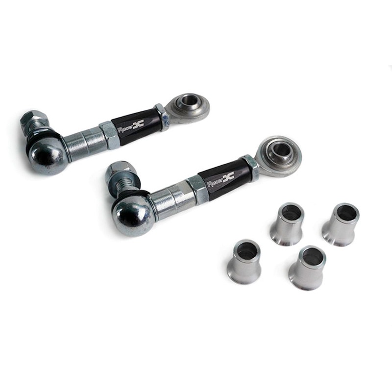The Racer X Fabrication sway bar links for the 2022+ Toyota GR86 / Subaru BRZ improve rigidity and fit and are perfect for racing and daily driving. Will work with the OEM or aftermarket strut bar. The adjustable sway bar end links are machined from 6061-T6 aluminum and come with aluminum spacers to fit into the control arm which attach to a spherical rod end. The quality spherical rod ends used on the bottom provide for longevity and a rattle free ride. The top uses a ball joint that is designed to correctly align into the sway bar.