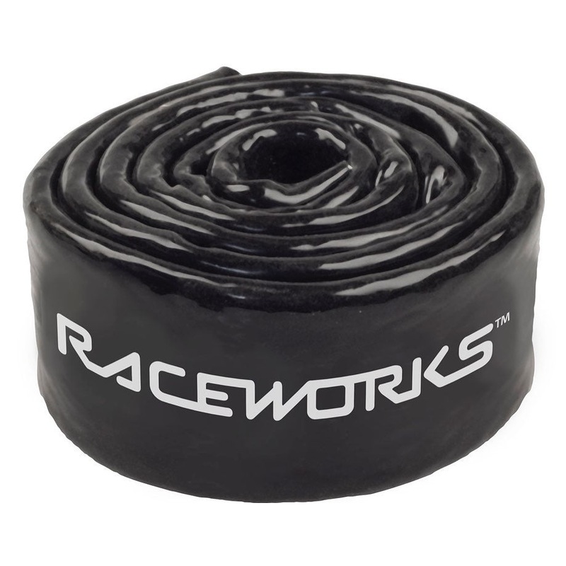 Raceworks Fibreglass Heat Sleeving is constructed using a Fibreglass braid, and covered in a black silicone rubber. It forms a protective barrier in high heat environments. Withstands a continuous operating temperature of 260degC, and has a maximum short term exposure of 1100degC. Sold in 1M lengths. Available in 8mm, 12mm, 16mm, 19mm, 22mm and 25mm I.D. Part number is RWM-051-xxMM. all sizes except 8mm have a Raceworks logo.