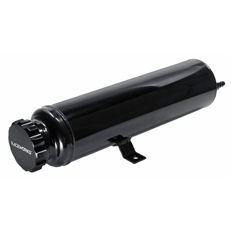 Black 2 Litre, 2 x AN-4 ORB. Includes 2 x 3/8 Barb adapters, Height: 360mm, Width: 89mm, Depth: 89mm. Contains internal breather tube.
