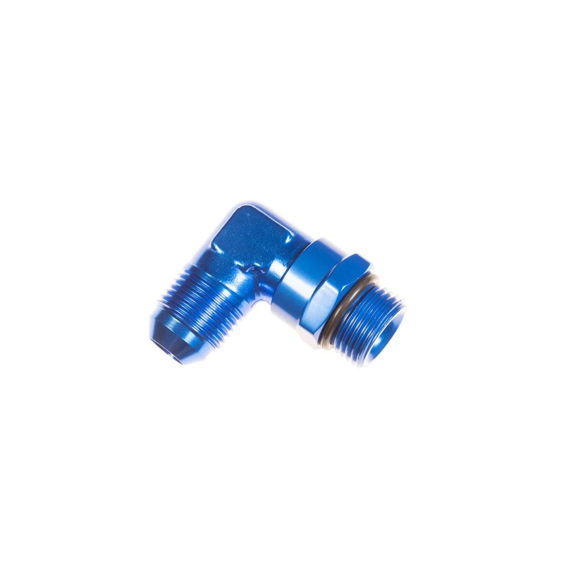 Fitting – Adapter – 1690 Series – 90 Degree – 6 AN Male to 6 AN Male O-Ring Swivel – Aluminum – Blue – Anodized – Each