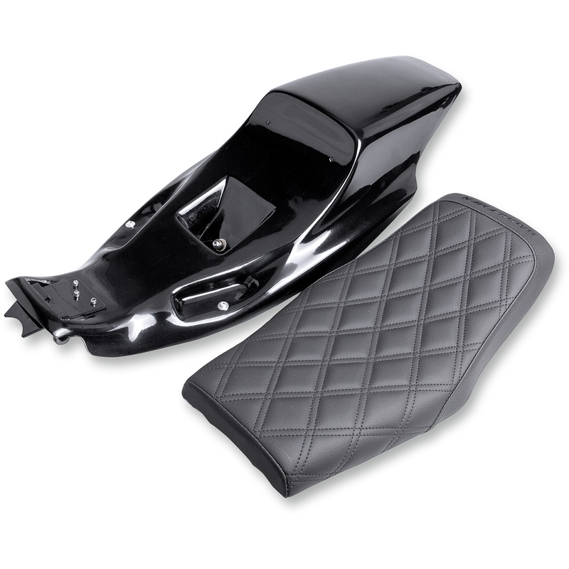 Give your XL Street Tracker style with this complete tail section/seat kit. Tail section is 100% marine-grade fiberglass with a black gel-coat finish that is ready for prep, prime, and paint. Bolts on in minutes; kit includes all necessary hardware for a c