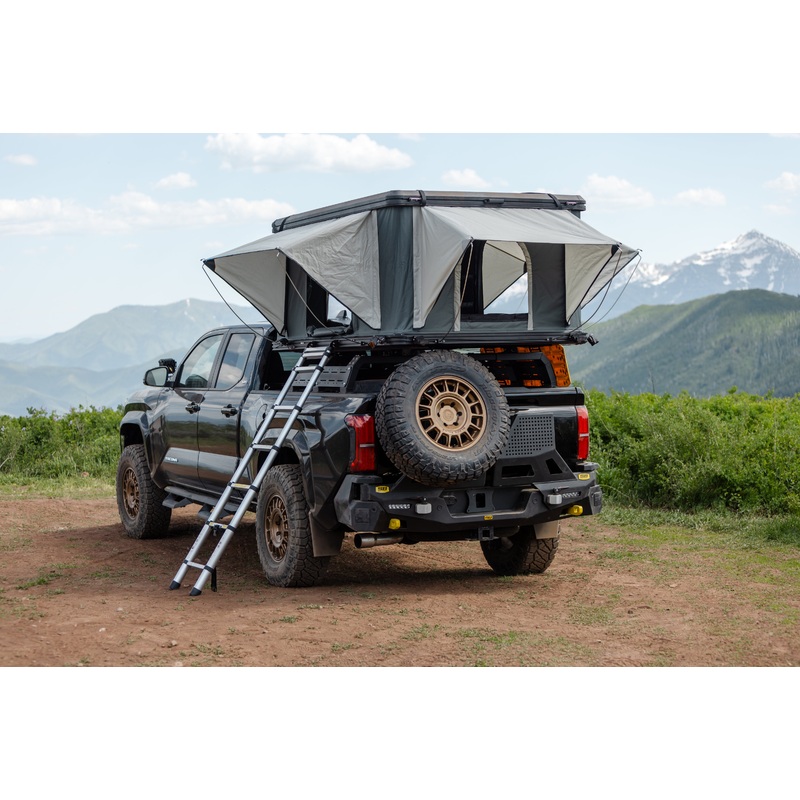 The Smittybilt Pop-Up Aluminum Hard Shell Tent is the ultimate off-road shelter for adventurers who demand durability and ease. With its low-profile, aerodynamic black aluminum shell, this rooftop tent is lightweight yet robust, offering a 661lb load capac